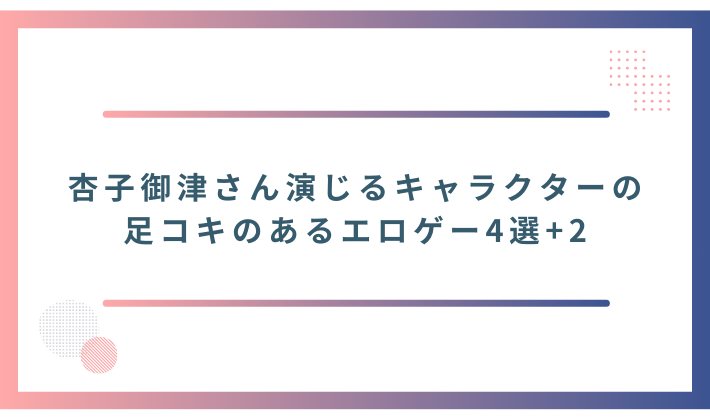 以上、杏子御津さんが演じるキャラクターの足コキ4つと番外編2つを紹介しました。