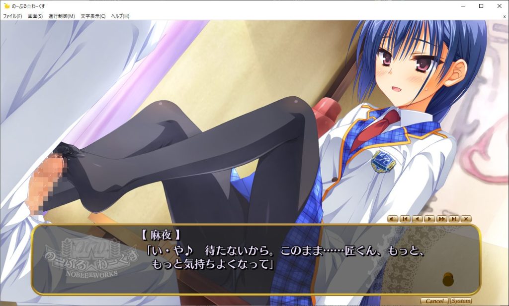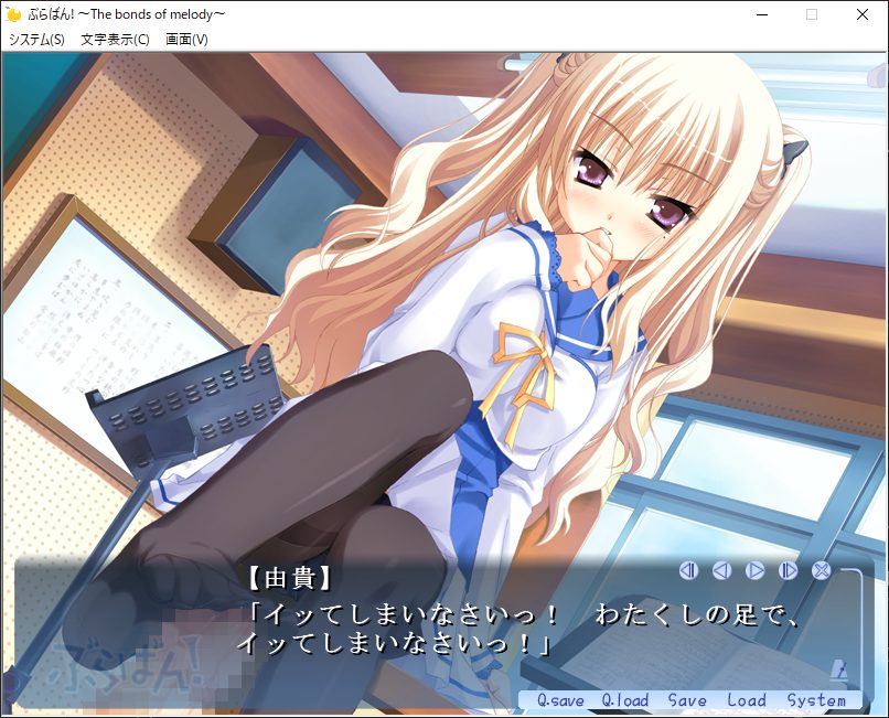 また、今までのゆずソフトは足コキのときにパンツとか大事な部分がテキストウィンドウで見えないといった欠点がありましたが、本作では解消されているので足コキのイラストを楽しみたい人にもおすすめです。